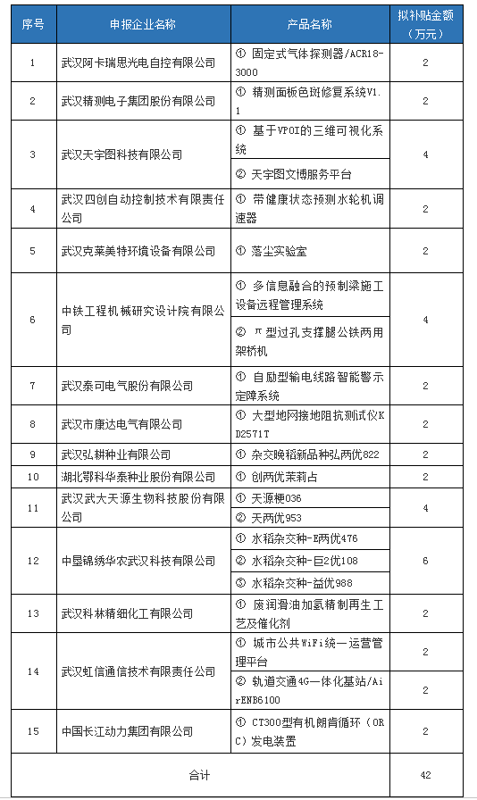 附表:2018年度洪山區(qū)市級創(chuàng)新產品項目擬補貼企業(yè)名單