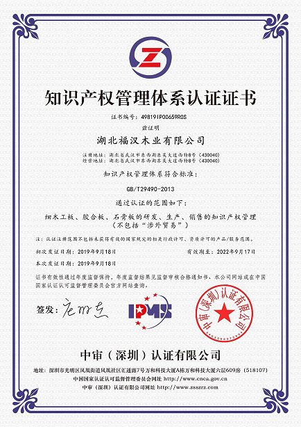祝賀丨湖北福漢木業(yè)有限公司獲得國家級知識產(chǎn)權(quán)貫標(biāo)認(rèn)證!