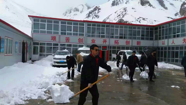 2016年3月21日青海共和縣青海銅鑫礦業(yè)有限公司礦區(qū)迎來了自春節(jié)以來的第一場大雪,前幾這里還太陽高照,天氣晴朗,與此同時(shí)洛陽陽光明媚,鳥語花香,現(xiàn)在青海銅鑫礦區(qū)則被厚厚的白雪覆蓋,呈現(xiàn)出另一番別樣的景像。青海分公司員工也一起參加礦山工作區(qū)的除雪工作,個(gè)個(gè)干得熱火朝天,一會(huì)兒大院里的雪就被清理完畢。