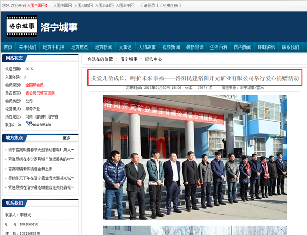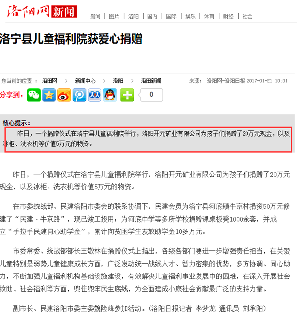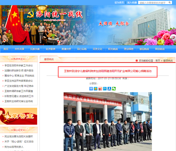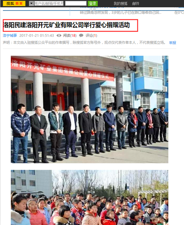 弘揚社會正能量 愛心事業(yè)美名揚——洛陽開元礦業(yè)集團善舉引起國內(nèi)各大媒體高度關(guān)注