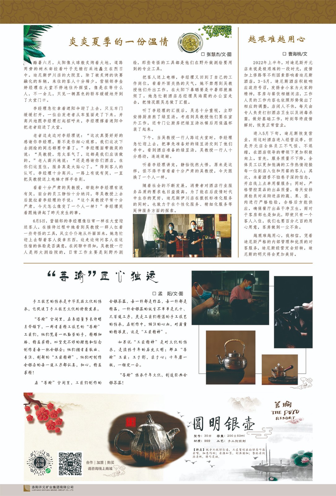 洛陽開元礦業(yè)集團有限公司簡介洛陽開元礦業(yè)集團有限公司,始成立于2006年,位于洛陽市開元大道269號。集團旗下共有五余家全資子公司,業(yè)務(wù)涉及有色金屬礦山開發(fā)、礦產(chǎn)品購銷與進出口貿(mào)易、房地產(chǎn)開發(fā)、文化藝術(shù)、企業(yè)管理與咨詢、資本投資等多個領(lǐng)域。民建河南省委委員、民建河南省委企業(yè)委副主任、民建洛陽市委委員、企業(yè)委主任、洛陽民建企業(yè)家協(xié)會會長許明月是公司創(chuàng)始人,現(xiàn)任洛陽開元礦業(yè)集團有限公司董事長。在礦業(yè)領(lǐng)域,洛陽開元礦業(yè)集團擁有多家實力雄厚的子公司:貴州開元礦業(yè)有限公司探、采礦權(quán)面積共11.33平方公里;興??h銅鑫礦業(yè)有限公司探礦權(quán)面積8.76平方公里,礦山資源潛力巨大;2021年,開元集團與盧氏中科礦業(yè)有限公司開展戰(zhàn)略合作。盧氏中科礦業(yè)有限公司專注于有色金屬的浮選、加工和銷售,擁有強大的技術(shù)支撐平臺,是集探、采、選、冶、研為一體的中大型綜合礦業(yè)企業(yè)。目前,盧氏中科王家河1000噸選礦廠已成功投產(chǎn),雙河金礦、柳關(guān)欒盧鉛鋅礦相繼順利開工,樓房銀礦與圪老灣鉛鋅礦的深部探礦重大突破,標志著礦山版圖取得重大進展,為開元集團后續(xù)發(fā)展奠定了堅實基礎(chǔ)。在文化傳媒領(lǐng)域,洛陽市明月美術(shù)館通過豐富多樣的藝術(shù)展覽、學(xué)術(shù)研討和公共教育活動,努力打造一個集展覽、交流、教育、研究為一體的綜合性藝術(shù)平臺。此外,在金融投資領(lǐng)域,開元集團旗下的北京明峰資本管理有限公司專注于投資具有高增長潛力的優(yōu)秀企業(yè),特別是高科技、新能源、環(huán)保等新興產(chǎn)業(yè),為客戶提供個性化的資產(chǎn)配置服務(wù)。在做好企業(yè)經(jīng)營的同時,開元集團始終不忘企業(yè)的社會責任和家國情懷,以突出的愛心公益事跡,開展了一系列公益慈善活動:“民建林”公益事業(yè)通過“思源基金”“幫幫公益”線上公益平臺,與眾多愛心人士籌措資金20余萬元;資助541名貧困大學(xué)生共計270余萬元,推進“數(shù)字助力——河南AI人才培養(yǎng)”;捐款10萬元,馳援京津冀、黑龍江洪水地質(zhì)災(zāi)害……公司于2017年底被洛陽市慈善總會評為“洛陽慈善風云榜——十大愛心集體”。洛陽開元礦業(yè)集團有限公司秉承持續(xù)發(fā)展理念,憑借多年來良好的企業(yè)信譽與經(jīng)營業(yè)績,與全國多家企業(yè)建立了良好合作關(guān)系,受到社會各界的一致好評,多次榮獲“納稅標兵”“先進企業(yè)”“招商引資模范企業(yè)”等榮譽稱號?;赝麃頃r路,開元人勠力同心,以“闖”的精神和“創(chuàng)”的勁頭,一路披荊斬棘,踏過千山萬水;展望新未來,開元人凝心聚力,不執(zhí)于“舊”,無畏于“新”,秉承“勇于跨越,追求卓越”的企業(yè)精神,乘著國家高質(zhì)量發(fā)展新征程的東風,跨過高山,越過大海,向著集團多元化、國際化的目標,逐夢遠航,跨越前行!