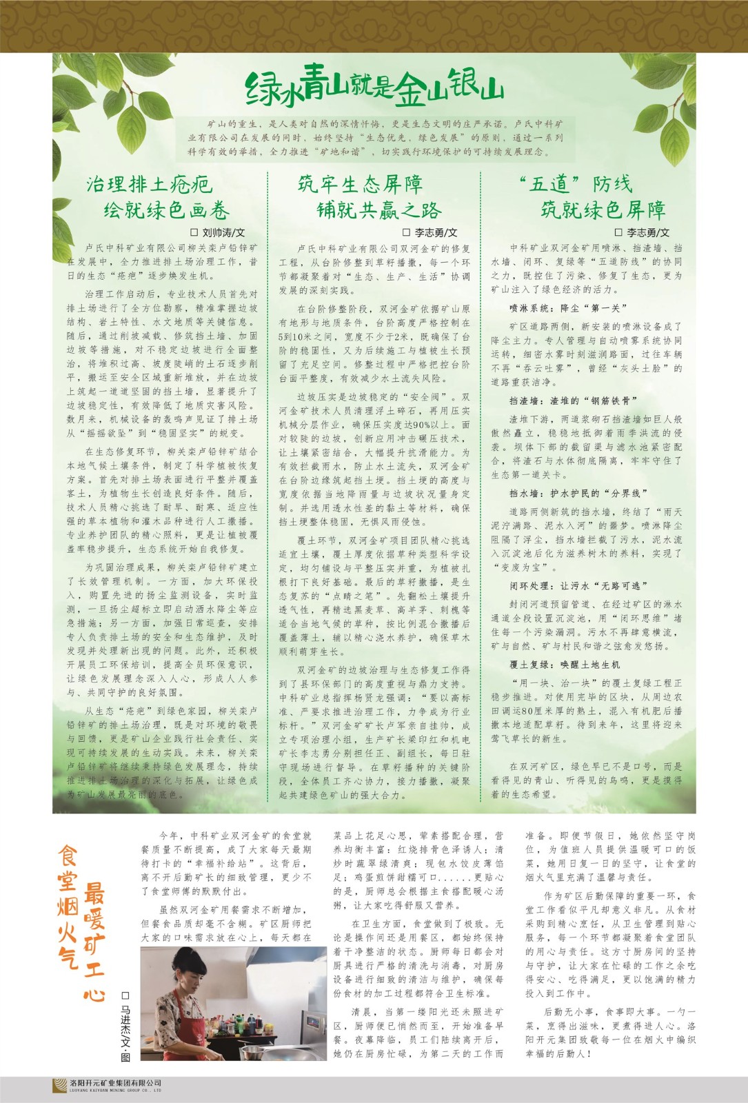 我們堅持“絕不能以犧牲環(huán)境和人的健康為代價從事生產”的理念,重視環(huán)境保護,堅持發(fā)展循環(huán)經濟,打造綠色花園式礦山企業(yè)。